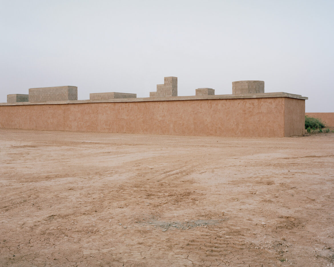 Two vital infrastructures cross this desertic plot in the plain of Haouz. The first one, a mesref, is a small water channel filled a few times per year for agricultural purposes thanks to a complex network of canals flowing from the high Atlas. The second, a khetara, is an underground draining gallery built by the Almoravid one thousand years ago to bring water to Marrakesh from distant groundwater. Although mostly invisible, water is an important part of this dry landscape. Humans have domesticated the plain for thousands of years, irrigating and dividing the fields with endless rammed earth walls.